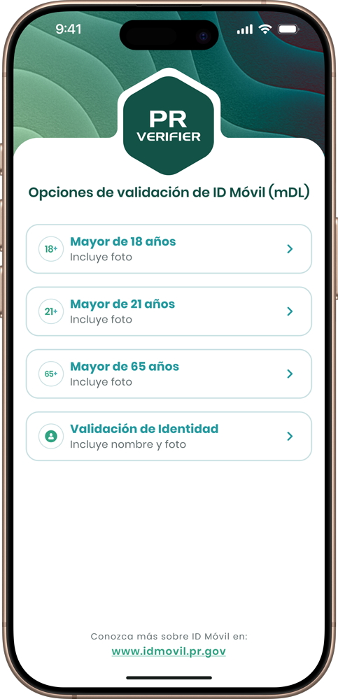 Verifique una ID en Apple Wallet, Google Wallet y otras identificaciones móviles (mDL) directamente desde su iPhone con la aplicación móvil Puerto Rico Verifier, sin necesidad de lectores o dispositivos adicionales.